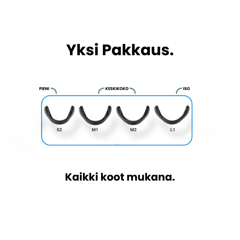 Jokaisessa aloituspakkauksessa on 4 eri kokoista nauhaa (S2, M1, M2, L1).